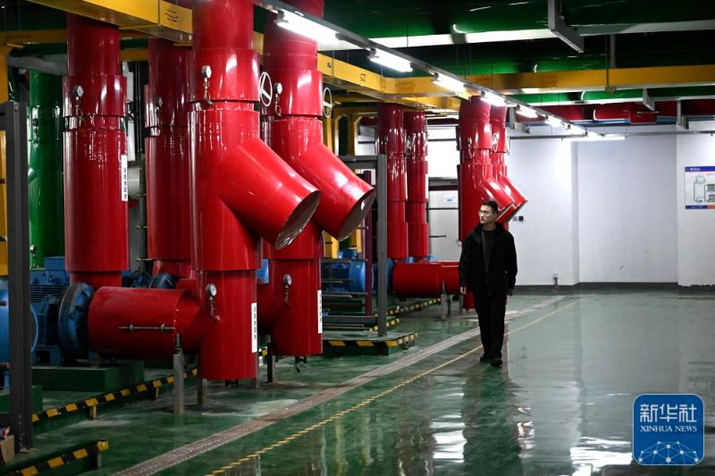 ↑ 工作人员在宿州市算力产业园制冷机房查看设备运行情况。新华社记者 黄博涵 摄